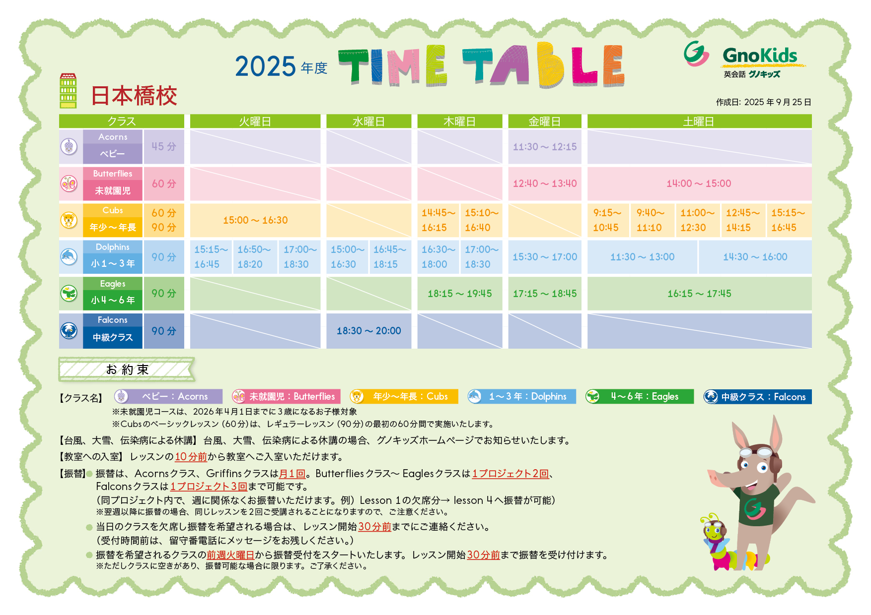日本橋校タイムテーブル