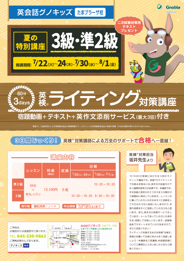 夏の英検®ライティング対策講座 まだお申込みいただけます!