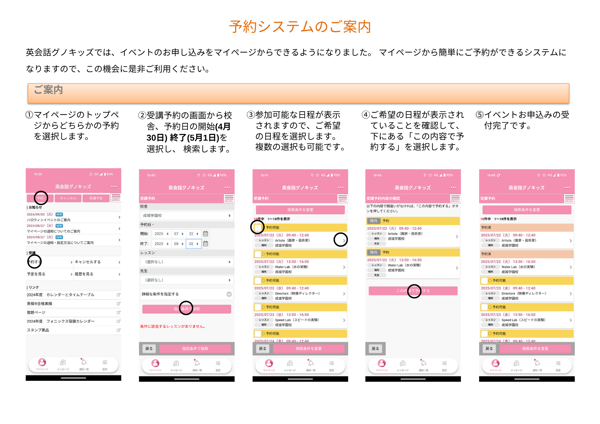 マイページからのイベント申込み方法について