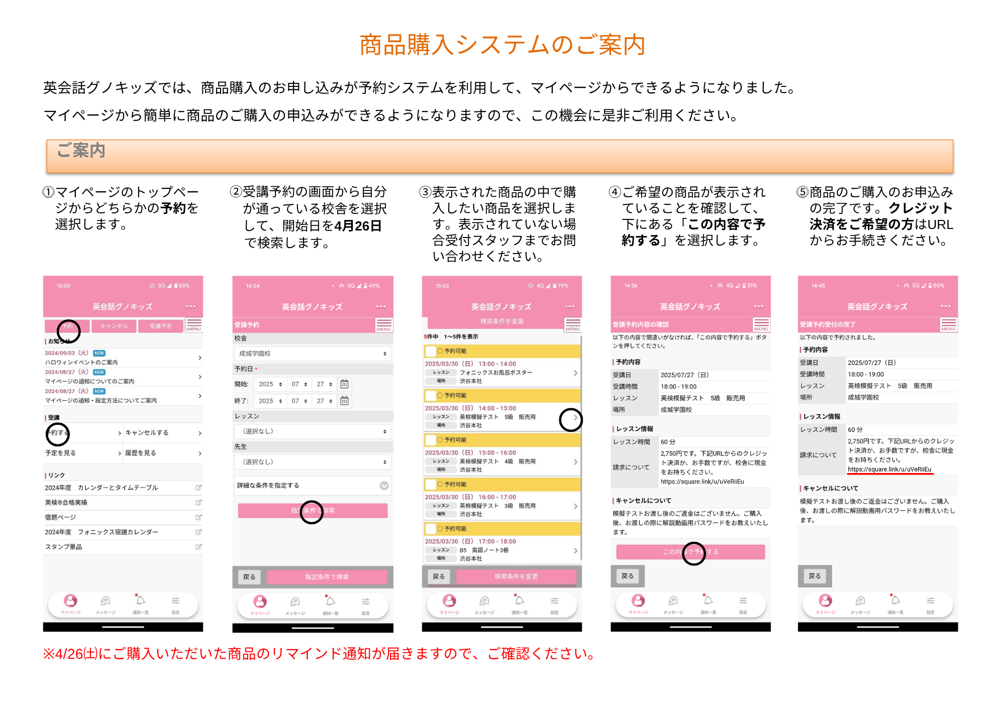 商品が表示されない方はお手数ですが、受付スタッフまでご連絡ください。